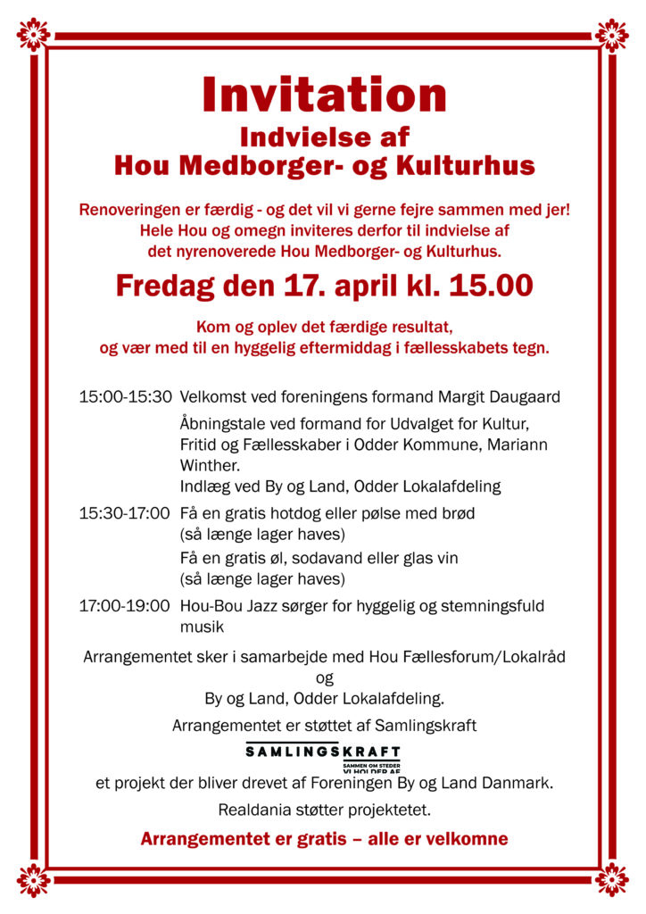 Postadresse:Hou Medborger- og KulturhusSkolegade 15B, Hou8300 Odder